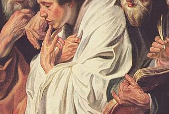 Los cuatro evangelistas, hacia 1620,Museo del Louvre de París.Jacob Jordaens forma parte de la gran generación del Barroco Flamenco junto a Rubens y Van Dyck. Nació en 1593 en Amberes, siendo discípulo de Adam van Noort, con cuya hija contrae matrimonio en 1616. Es miembro del gremio de pintores desde 1615, llegando a ser decano de la institución. Trabajó como ayudante en el taller de Rubens, cuyo estilo conjugó con las influencias de Caravaggio y Jacopo Bassano. Así, sus figuras serán totalmente realistas, democratizando los temas sagrados y mitológicos. Sus luces serán violentas, empleando un colorido de gran viveza. Jordaens continuó con los encargos que había hecho Felipe IV para la Torre de la Parada a Rubens tras la muerte de éste, siguiendo con su estilo, aunque careciera de la imaginación del maestro. En 1649 recibió el encargo de decorar la sala de Orange en la casa del Bosque, cerca de La Haya. Realizó también un importante número de retratos en los que muestra la burguesía flamenca como el Retrato de familia del Museo del Prado. Jordaens falleció en Amberes en 1678.