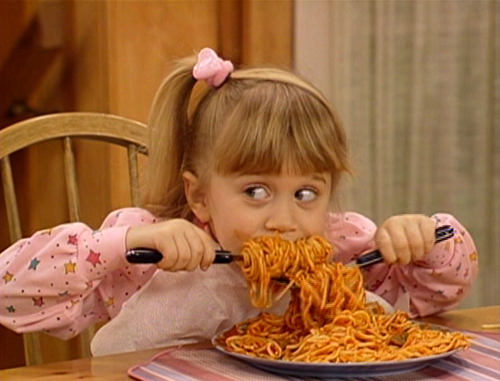- Escurrir la pasta, servir en una fuente grande, añadir el resto de los ingredientes