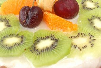 Pela kiwi,córtalo de forma regular,Pela la mandarina ,retira sus gajos sin dejar membrana en ellos.Corta los gajos en trocitos .