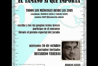 Vuelven los recitales de relatos en Diablos Azules (C/Apodaca, 6) con El tamaño sí que importa, una Jam Session de relatos coordinada por Carlos Salem y Marcelo Luján en la que un narrador lee un cuento y el público puede participar en el gran premio del jurado. En esta ocasión, el relatista invitado es Recaredo Veredas, autor de Actos Imperdonables. Será mañana miércoles a partir de las 20 horas.