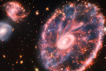 Las observaciones de Webb subrayan que Cartwheel se encuentra en una etapa muy transitoria. La galaxia, que presumiblemente era una galaxia espiral normal como la Vía Láctea antes de su colisión, continuará transformándose. Si bien Webb nos brinda una instantánea del estado actual de Cartwheel, también brinda información sobre lo que le sucedió a esta galaxia en el pasado y cómo evolucionará en el futuro