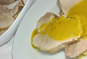 Con la palabra escabeche me viene a la mente vinagre, me viene a la mente un sabor ácido y dulce a la vez y pensé que este plato sería así también. Yo suelo hacer mucho el pollo en escabeche o el atún, pero este jamón no se parece en nada a todo eso. El sabor de la carne es suave, queda muy jugoso y el sabor y la textura de su salsa es espectacular y mas nos recuerda a una salsa cremosa que a un escabeche en si mismo.