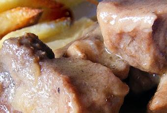 - En una olla con el fondo cubierto de Aceite de Oliva, doramos los trozos de carne salpimentados. Reservamos.