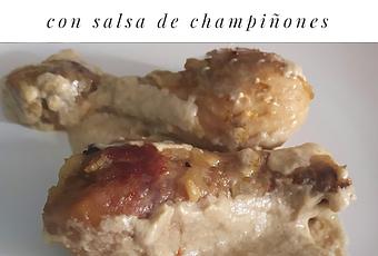 - Limpiamos los champiñones, los cortamos en laminas y rehogamos unos minutos en la misma sartén. Salpimentamos y agregamos la salsa. Cocemos durante 5 minutos. Servimos los jamoncitos junto a la salsa de champiñones.