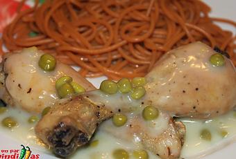 3.- Cuezo la pasta siguiendo las instrucciones del fabricante.4.- Presento el muslo en un plato cubierto de salsa y con la pasta a un lado. La salsa sobrante la llevo a la mesa en una salsera y a disfrutar.