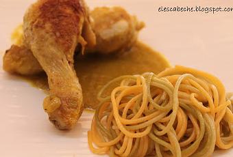 - Servir el pollo con la salsa y acompañado de una ración de espaguetis de verduras.