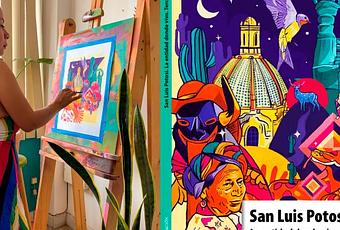 Con una obra que plasma la iconografía característica de SLP con elementos como la mujer huasteca, un “huehue”, la tuna, el venado, el Jardín Escultórico de Edward James, las cúpulas del Centro Histórico, elementos del desierto entre otros , la mexicana consagra uno más de sus proyectos.