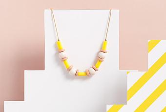 Nueve collares que combinan piezas de madera, cristal, cerámica y corcho, y crean composiciones sencillas y alegres.