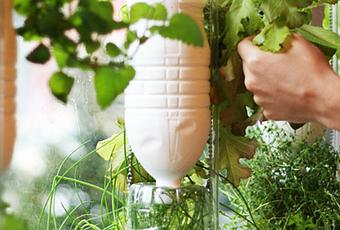 Sólo necesitas recipientes: botellas de plástico, una tubería fina, un pequeño motor de bombeo y ¡a plantar lechugas!