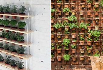 Creando una retícula de macetas, ayudado con un sistema de baldas o colgadas directamente de la pared.