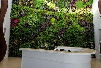 Hemos realizado esta selección de especies por sus pocas exigencias de fertilización y sencillez de mantenimiento, no por ello renunciamos a una gran variedad de colores que conforman la imágen de la empresa de cara al exterior. Si quieres aprender a hacer jardines verticales como este puedes apuntarte a nuestros cursos de jardines verticales.