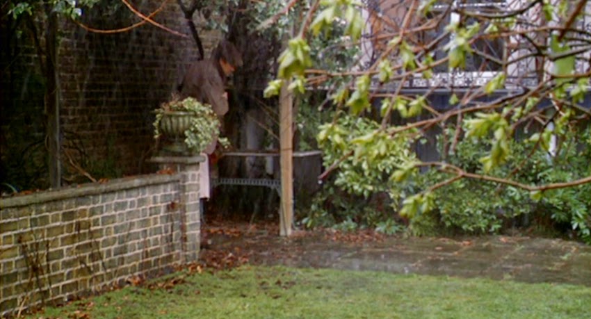 Empiezo la serie con una película bastante desconocida pero muy recomendable: El caso Winslow. La familia Winslow tiene un jardín urbano en Londres con todos los elementos que tendría yo en el mío: muros de ladrillo con trepadoras, macetones con flores, puerta de madera, terraza con muebles de mimbre, barandilla de forja, zona de césped con muebles de madera y altos árboles para tener buena sombra en verano.