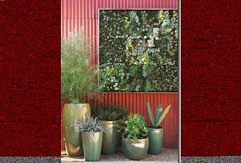 Este jardín vertical está creado por Kevin Smith. El bastidor está realizado en Bejuco seco, que como antes mencionaba, traspasa la simple realidad de un jardín vertical, para convertirse en una obra de arte con vida propia.