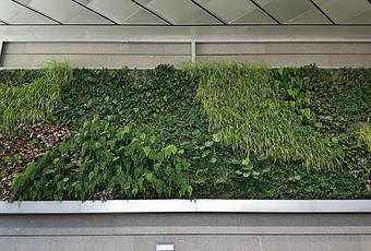 Cuando se realizó la plantación, el ritmo de trabajo fue un poco más lento de lo esperado ya que los operarios tuvieron que plantar desde una cesta. Las plantas que conformaban estos jardines verticales fueron las siguientes: