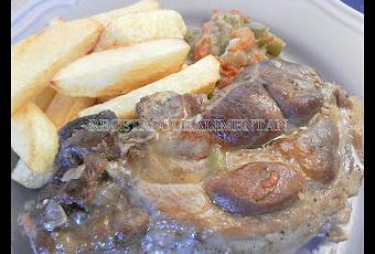 Pasado ese tiempo, despresurizamos y servimos en una fuente acompañando con patatas fritas en cubos grandes o en tiras gordas.