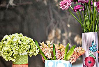 Su fabricación es bien sencilla y quedan geniales para decorar una mesa. Escoge las latas que más te gusten, si son de diferentes tamaños mejor, y con un poco de cola pégales papel de regalo de colores. Termina de darle color a la habitación metiéndoles unas flores vistosas.