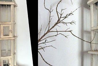 El velador Isabelino y la jaula vintage forman un ricon acogedor y romantico en el salon.