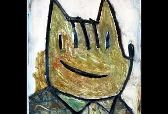 Si bien la exposición deja bien patente su faceta como ilustrador, con una gran mayoría de dibujos, he encontrado algunas "pinturas" que a mi juicio son más pintura en el sentido pictórico de la palabra, obviamente sin desmerecer el trabajo más comercial y de carácter más ilustrativo. En especial me han parecido interesantes algunas ceras de estilo más expresionista que en cierta manera me han recordado a mis admirados maestros expresionistas y fauvistas de los primeros años de nuestro pasado siglo XX. También sus últimas obras de gran formato, sus cocinas y sus sillas en la terraza, en un estilo muy peculiar (muy Mariscal) que sorprenden por ese dibujo de contorno tan marcado y acorde con la ilustración del cómic pero que en tamaños grandes adquieren la dimensión de una obra pictórica en su sentido más estricto; a mi entender entre la ilustración y la pintura consigue de manera similar a Roy Lichtenstein o Tom Wesselmann, siempre con su propio sello, acercarnos al arte de la pintura a través de comic. Sus temas, sin duda claramente urbanos, como gran observador y fiel paseante de una ciudad como Barcelona, los representa de manera muy gráfica, como es el caso de estas sillas que sugieren de manera simbólica la esencia de una urbe o la vista de Barcelona desde Monjuich, con esos pinos negros, casi planos, que podrían salir de una viñeta para incorporarse a una tela de grandes dimensiones. También tienen una peculiar fuerza sus retratos expresionistas de trazos gestuales, muy simples, de primera intención, pero que adquieren la magnitud de la obra pictórica.