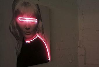 Javier Martín, es conocido por tapar siempre los ojos de sus personajes y de sus modelos. En la obra que os presento para poder debatir durante unos días conocida con el título "Blindness Light", los elementos tecnológicos utilizados parece que se utilizan precisamente para destacar y hacer que nos fijemos en los ojos de la modelo.