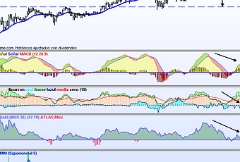 Si nos fijamos en los indicadores como el MACD, tenemos una divergencia bajista muy evidente, que de momento no se ha cumplido, pero ha frenado la evolución alcista de corto plazo de Jazztel.