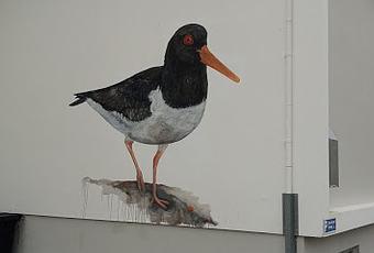 El caso es que,para animar las cosas este año, han creado una ruta por Flateyri para descubrir 12 tipos de aves, que representan la gran diversidad aviar. Y como lo han hecho? Con grandes pinturas en paredes de edificios escogidos, tanto públicos como casas de particulares (Con el permiso de estos, claro!), realizadas todas ellas, a mano, por Jean Larson, una artista norteamericana (Pintora y fotógrafa) que pasa largas temporadas en la zona y que es muy conocida,sobre todo por este país Esto lo significa que Flateyri tendrá 12 obras originales al aire libre, una por ave, de una artista conocido. Y obviamente, al estar en la calle...no hay que pagar por verlas.Las aves ya están pintadas pero durante la segunda quincena de este mes se hará una "inauguración oficial" con los representantes del pueblo,la artista y otros invitados.