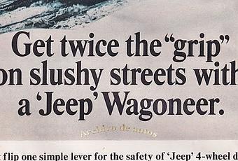La publicidad, que está tomada de la revista estadounidense National Geographic, del mes de diciembre de 1966, fue parte de una campaña gráfica de la empresa Kaiser Jeep Corporation. Donde se vio al Jeep Wagoneer en distintos tipos de caminos, y situaciones.