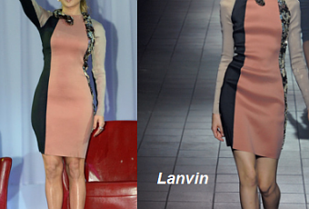 Jennifer López eligió un ceñido vestido rosa, negro y beige, (con una original serpiente de pedrería en un costado, que le daba la vuelta por detrás del cuello y asomaba la cabeza por el frente), y que combinó con zapatos de ante negro con pulsera y plataforma, de Giuseppe Zanotti, para presentar la gira que hará este verano con Enrique Iglesias y Wisin y Yandel. Enrique Iglesias vestía de manera informal, con vaqueros, sudadera azul marino de manga corta y su característica gorra.