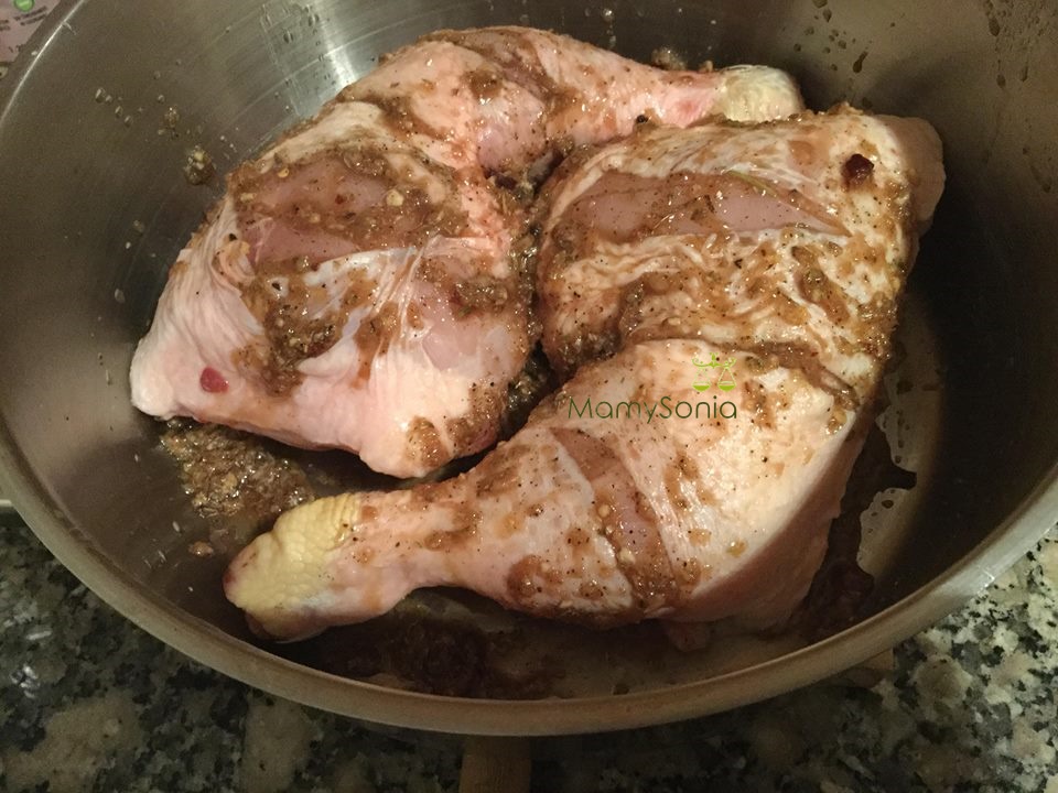 Volcamos la mezcla sobre el pollo junto con la sal mezclamos bien y lo dejamos macerar unas 3 horas