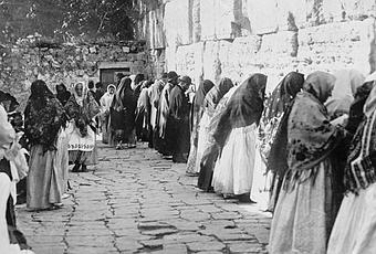 En una imagen del Muro de los Lamentos, hombres y mujeres oran juntos. En una foto de la aldea de Shiloah, los inmigrantes yemenitas viajan a Gihon Spring para sacar agua y en otro, los atareados comerciantes disfrutan de un animado día de comercio cerca de la Puerta de Damasco, mientras que otro representa a un hombre judío solitario caminando por los callejones de la Ciudad Vieja de Jerusalén.