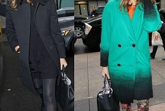 El segundo es un absoluto desastre, sobre todo para un abrigo que tiene posibilidades y que la actriz ha destrozado combinándolo con unos horribles pantalones floreados de Erdem Conelly y sandalias de Bárbara Buy, también destrozadas, puesto que parece que lleva unos leggings blancos asomando por debajo. El jersey naranja, de Acne Lia, tampoco ayuda. Así vestida acudió al programa de televisión "Live with Kelly Show".