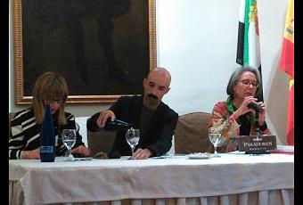 Jesús Carrasco, austero y cordial, tiene un aire portugués acrecentado por su severo bigote y un hablar cadencioso e inteligente, como demostró compartiendo impresiones con los lectores el jueves 12 de mayo, invitado por el CPR de Zafra a un acto cuyo público abarrotaba la capilla del Parador de turismo de Zafra, desbordando las ya grandes expectativas de la propia organización (recordemos que este autor fue disputado finalista con su obra Intemperie en la anterior edición del premio Dulce Chacón). Jesús Carrasco nos desveló el proceso de composición de sus novelas, basadas en una gran documentación sobre el terreno, impregnándose el autor de las sensaciones de aquello que narra además de situar espacialmente la acción que no gusta desvelar explícitamente a los lectores en el texto (salvo lo imprescindible) ya que, mantiene Carrasco, no quiere que el lector se desvíe de la dinámica planteada por el autor.