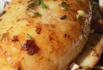 Lógicamente al ir entera, con todo su interior bien completo, al abrirla saldrá toda la tinta y todo su "relleno", el sabor realmente exquisito, les sorprenderá.La foto la hice cuando practicamente me había comido más de la mitad.....