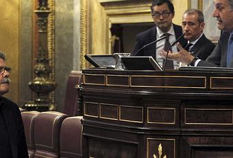 La imagen de nuestra entrada de hoy recoge el momento en el que el Sr. Tardá es expulsado del Congreso por negarse a utilizar el castellano, o español, en su alocución política. Pero no pensaba extenderme sobre el comportamiento fascistoide de los nacionalismos aldeanistas, sino simple y llanamente, sobre la imagen en cuestión. D. Joan, o D. Juan, como se llamaría en el resto de España, suele vestir de riguroso negro y no utilizar corbata. La corbata es una prenda de uso habitual entre los políticos y obligatoria en ciertas profesiones; hasta hace poco era imprescindible para los letrados, vestir camisa blanca y corbata negra en los plenarios, existiendo Magistrados que, siguiendo las viejas costumbres, critican otro tipo de indumentaria entre los profesionales del Derecho. La corrección en el vestir es una muestra de respeto hacia en entorno en el que uno se desenvuelve; en las bodas suelen, novios e invitados, lucir sus mejores galas, precisamente por este motivo. Acudir con aspecto desaseado a un bautizo, a la misa del domingo o a la romería del pueblo, estaba mal visto, porque suponía una falta de atención del individuo hacia su entorno. A Joan Tardá parece importarle un comino el Congreso de los Diputados, porque no demuestra tenerle ningún respeto; solo falta que un día no lo reconozca, como hacen los delincuentes etarras ante los Jueces del país que los vio nacer. Al Sr. Tardá le importan dos dídimos sus compañeros, tanto adversarios como correligionarios, el presidente de la sala y hasta el sursum corda, porque su persona se sitúa por encima del bien y del mal y habla en el idioma que le da la real gana, aunque lo expulsen con su vestimenta de progresista trasnochado. La verdad, es que hubiese resultado extremadamente más sencillo no dejarlo entrar.