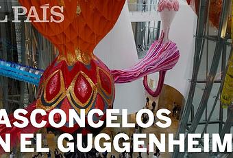 “Es un cuerpo femenino que habita una arquitectura masculina”. Joana Vasconcelos (París, 1971) explica su monumental obra mientras sigue con la cabeza los brazos de la estructura hinchable revestida de ganchillo de dos toneladas de peso que ocupa el atrio del Guggenheim de Bilbao. La artista portuguesa la ha diseñado específicamente para el acceso a las salas dedicadas a Richard Serra, a ese lugar de encuentro “único en el mundo de arte” entre la escultura del estadounidense y la arquitectura de Frank Gehry. El ganchillo cálido frente al frío titanio. Los visitantes del museo vasco levantan la mirada asombrados para observarla, para recorrer los meandros de Egeria, el nombre de la viajera hispanorromana del siglo IV. Es la más espectacular de la treintena de obras que forman la primera antológica que se dedica en España a Vasconcelos, convertida en una celebridad internacional en el mundo del arte gracias a sus enormes instalaciones, irónicas, divertidas, feministas, reivindicativas.