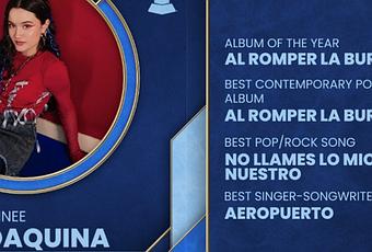 SIENDO LA GANADORA MÁS JOVEN DEL LATIN GRAMMY A ‘MEJOR NUEVO ARTISTA’, EL ÁLBUM DEBUT DE JOAQUINA ‘AL ROMPER LA BURBUJA’ RECIBIÓ NOMINACIONES AL LATIN GRAMMY EN LAS CATEGORÍAS ‘ÁLBUM DEL AÑO’, ‘MEJOR ÁLBUM POP CONTEMPORÁNEO’, ‘MEJOR CANCIÓN POP/ROCK’ («NO LLAMES LO MÍO NUESTRO») , Y ‘MEJOR CANCIÓN CANTAUTOR’ («AEROPUERTO»)