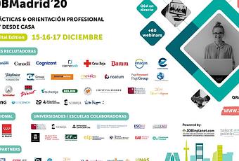 JOBMadrid se celebrará los próximos 15, 16 y 17 de diciembre en formato virtual y con webinars impartidos en directo, con el fin de dar oportunidades profesionales al mejor talento junior, orientación laboral y tips para afrontar procesos de selección o diseñar la trayectoria profesional.