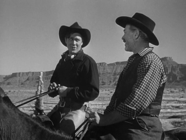 De todos sus westerns “Wagonmaster” fue la película favorita del director. (Ford solía adjetivar muy positivamente sus pequeños proyectos). Como sus primeros Weterns con H. Carey, fue un proyecto que se realizó sin mayores problemas, se filmó con un mínimo presupuesto, lejos de las ciudades y sobre todo de los productores. La historia era del propio Ford. y F. Nugent escribió el guión, con la colaboración de Pat Ford, el hijo de el tuerto. Wagonmaster consta de una serie de segmentos , de corte épico y “rufianesco!”, que se van alternando y que suceden a un grupo de Mormones que busca llegar al estado de Utah para establecerse en su tierra prometida, pero les hace falta alguien que sepa dirigir una caravana.Lindsay Anderson, que lo describió como “un western de vanguardia ”Señaló:”Ford abandona a menudo la narración para pasar a recrearse con esos inmensos y etéreos parajes donde jinetes y carretas van superando obstáculos naturales más impresionantes , donde figuras encogidas y exhaustas se mueven a trompicones entre el polvo”. Wagonmaster que a primera vista parece uno de los films más directos de Ford (Andrew Sarris dice que no hay signos de moral) es una fábula profundamente ambigua, y de una moralidad casi perversa. Wagonmaster comienza con los mormones que se están preparando para dejar el pueblo de Mildlans , de donde son echados a la fuerza. Otra vez los marginados ( La diligencia, las uvas de la ira, El gran combate, etc) que salen en búsqueda de su tierra prometida. “La mezcla de forajidos y peregrinos es lo más atrae a Ford”. Simbólicamente, los mormones representan a los pioneros americanos, aquí reconocemos una típica ironía Fordiana: Un grupo de parias que representa los ideales americanos. No es suficiente que Ford enfrente a los peregrinos a la intolerancia, han de vérselas también , con el hambre y la sed, las montañas, con los peligros de la propia naturaleza , pero esto no es suficiente, una banda de forajidos , los Clegg (el inicio de Wagonmaster es un atraco a un banco por esta banda) se encuentran con ellos y les obliga a cambiar de dirección, y no sólo han de enfrentarse a ellos sino también con un par de amorales traficantes de caballos (H. Carey Jr. Y Ben Johnson), además de encontrarse en medio del desierto con una Troupe de desclasados actores ambulantes y borrachos. Para llegar a la tierra prometida los mormones tienen que adaptarse al mundo “real”, para poder sobrevivir, tienen que jugarse sus ideales y sus vida y es impresionante la forma que resuelven su búsqueda: los Cleggs tienen que morir antes de cruzar la montaña que conduce a tierra prometida. Los pragmáticos tratantes de caballos acaban aceptando la oferta para dirigir la caravana, antes de estafar a los mormones pidiéndoles 50 $ por cada caballo, de todas formas, Elder (War Bond) uno de los jefes del grupo mormón, tiene que intentar de convencerlos como sea para seguir adelante e internarse en el infierno. Durante el camino la “Familia” mormonas se verán desafiada por otras “familias” , los Cleg (un padre y cuatro hijos), la banda teatral que no hace más que entorpecer y una tribu de indios navajos pacíficos pero desconfiados. Elder Wiggs (W Bond) representa al héroe típico fordiano, representa todo lo vital y valioso del grupo y aunque se mantiene a cierta distancia, a veces se enfrenta abiertamente a los demás, como el encuentro con los actores, borrachos que se encuentran sin un destino fijado, tirados con su carro sin caballos en medio del desierto, sólo él se da cuenta de la necesidad “moral” de permitir a los actores que se les unan a la caravana, de la misma forma se había dado cuenta que sin los guías no serían capaces, prácticamente , de enfrentarse al desafiante viaje. Bond es el centro de la película, el alter ego de Ford en la pantalla; su personalidad tan parecida a la del propio director. Poco antes del finan tanto el grupo de actores como los dos tratantes ya están plenamente integrados en la caravana. Bajo la tiranía de los Clegg, los mormones se dan cuenta que sólo pueden, por el acto de “matar” (aunque sea en defensa propia), el hombre que aprieta el gatillo es el que Elder había pedido había pedido que “ echara una mano el señor”.Después de haber cruzado la agreste montaña, Ford da fin a la historia pero no a la película, que continua pasando desde las primeras escenas de nuevo. La última es la del vadeo de un río, imagen repetida desde del comienzo del viaje, desde la orilla del río, tan distante y frío, vemos las carretas debatiéndose en medio de la corriente. “Sueño y documento” se fusionan para seguir la acción, pero la película se mantiene, el FIN aparece y desaparece, pero la película mantiene la maravillosa imagen del potro reluciente trotando con la orilla del rio, mientras los caballos y carretas siguen su camino. Uno de los westerns menos apreciados y con más carga de los que Ford rodó, y ya sabemos que no son pocos, donde ese buen ambiente de la “stockcompany”, De todos sus westerns “Wagonmaster” fue la película favorita del director. (Ford solía adjetivar muy positivamente sus pequeños proyectos). Como sus primeros Weterns con H. Carey, fue un proyecto que se realizó sin mayores problemas, se filmó con un mínimo presupuesto, lejos de las ciudades y sobre todo de los productores. La historia era del propio Ford. y F. Nugent escribió el guión, con la colaboración de Pat Ford, el hijo de el tuerto. Wagonmaster consta de una serie de segmentos , de corte épico y “rufianesco!”, que se van alternando y que suceden a un grupo de Mormones que busca llegar al estado de Utah para establecerse en su tierra prometida, pero les hace falta alguien que sepa dirigir una caravana.Lindsay Anderson, que lo describió como “un western de vanguardia ”Señaló:”Ford abandona a menudo la narración para pasar a recrearse con esos inmensos y etére