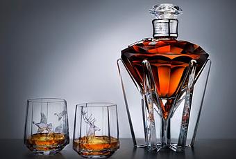 La botella, de espectacular diseño, está hecha en cristal de Baccarat con ornamentos de plata Britannia diseñados por Hamilton & Inches, los mejores plateros de Escocia. Se incluyen dos vasos de cristal especialmente diseñados por Cumbria Cristal, grabados por Philip Lawson Johnson, con escenas de fauna pertenecientes a los cotos propiedad de la reina en Balmoral y Sandringham. Para aumentar su valor añadido, cada botella lleva incrustado un diamante de medio quilate.