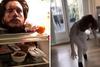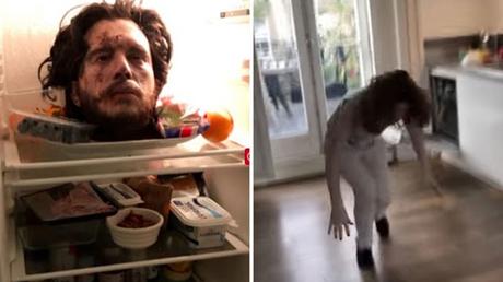 Vamos, que el mozo no tuvo otra ocurrencia que meter una réplica de su cabeza (Huummmm posible spoiler de la nueva temporada? XD) en la nevera y esconderse con una cámara para ver que hacía su novia (Están prometidos en la vida real). Y pasa lo que pasa: