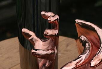 Este artista de Johannesburgo que reside en Londres, realizó varias piezas que en un principio parecían esculturas abstractas, sin una forma establecida pero que si se les ubica un cilindro de metal bien pulido, forman una figura en el reflejo. Y es en dicho cilindro donde se observar el significado de la obra de arte y donde todo adquiere una explicación.