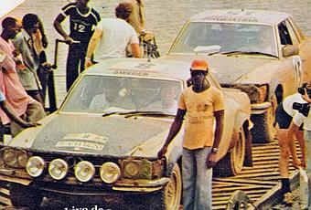 Waldegård-Thorszelius fueron los ganadores del Rally de Costa de Marfil, que se disputó entre el martes 9 y el domingo 14 de diciembre de 1980. Según el título de la foto la balsa, con los dos Mercedes-Benz 500 SLC iban para Abiyán (Abidjan)que es la capital económica, y sede del gobierno de Costa de Marfil.