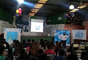 En esta oportunidad, nos acompañaron para hablar sobre la Antártida, el Dr. Juan Manuel Lirio, geólogo del Instituto Antártico Argentino y el biólogo José Luis Agraz, quien es miembro de la Secretaría del Tratado Antártico. Esta es la segunda Jornada del año en esa escuela, ya que en el mes de mayo concurrimos con nuestras jornadas la cual fue destinada a los alumnos del último ciclo de la educación secundaria de ese establecimiento educativo.