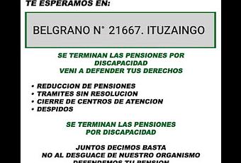 Mañana, martes 18 de septiembre, acompañamos la JORNADA DE LUCHA en defensa de las pensiones por discapacidad. Vení a defender tus derechos! Te esperamos en la calle Belgrano (ex. 2da Rivadavia) 21667, Ituzaingó.