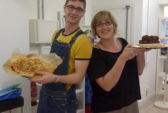 Deyan nos ha sorprendido con una Banitsa de espinacas que ha preparado su mamá Totka. ¡Tremenda! Ha gustado hasta a los que no entusiasman las espinacas, así que tenéis que probarla. A mi me tocaba el postre y quería hacer algo rápido y fácil de transportar, así que me he decantado por un brownie, como el que hago normalmente, pero esta vez le he puesto un poco de cacao del que me enviaron de Degustam.com por encima para chocolatearlo aún más.