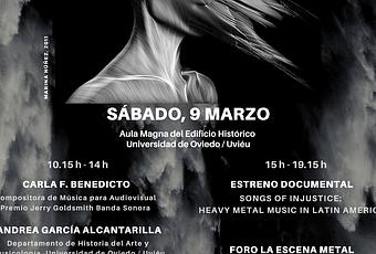 «La industria musical, culturas urbanas y participación de mujeres» es el tema de la jornada nacional organizada por la Asociación Sonidos de Mujeres para el 9 de marzo en la Universidad deOviedo. Y tengo el inmenso honor de formar parte del cartel dentro del apartado charlas :-)Es justo en el Aula Magna del Edificio Histórico de la Universidad donde se celebrará este evento sobre Industria musical actual con charlas, foros temáticos y el estreno del documental "Songs of injustice: heavy metal music in Latin America" a lo largo de todo el sábado 9 de marzo 2019.Desde las 10h de la mañana hasta las 19.30h de la tarde se irá desarrollando esta primera jornada nacional sobre la mujer en la Industria Musical, que han coordinado desde la Asociación Sonidos de Mujeres. La programación aúna profesionales de diferentes ámbitos vinculados a la música. A continuación conoce toda la programación y el horario.PROGRAMACIÓN JORNADA NACIONAL «INDUSTRIA MUSICAL: CULTURAS URBANAS Y PARTICIPACIÓN DE MUJERES»:En la jornada matinal, de 10.15h a 14h:-Charlas de:Carla F. Benedito (compositora)Andrea García Alcantarilla (Musicología Universidad Oviedo)Vane Balón (Distrito Uve y Agencia VB comunicAction)María J.M. Suárez (Filosofía Universidad de Oviedo).Ivana Castañón (Filosofía Universidad de Oviedo).-Foro de Colectivos y Festivales con:UnirockMaizu RockRaposu RockAedea's DaughtersCSA La KuadraMariantonias Fest (representando también a los colectivos Femirockers y Violeteras).En la jornada de la tarde, de 15h a 19.15h:-Estreno del documental "Songs of injustice: heavy metal music in Latin America" que solo puede visionarse en eventos como este.-Foro de La Escena Metal con:Steffi GarcíaMaitane Fernández (Diario de un Metalhead y Wacken Metal Battle Spain)Ani (Last Days of Eden)Julia Martínez-Lombó (Olimpo del Metal)Ana Doblado Gómez (Sevillametal.org)-Intervención de Laura Viñuela (Consultoría de género y Musicóloga).-Propuestas comunes coordinadas por María J.M. Suárez (Filosofía Universidad Oviedo).FIN DE LA JORNADA.Si estás por la zona no te pierdas la cita y comparte.NOTA DE PRENSA OFICIAL, DISEÑADA POR AGENCIA VB COMUNICACTION PARA LA JORNADA NACIONAL SOBRE INDUSTRIA MUSICAL DE SONIDOS DE MUJERES: