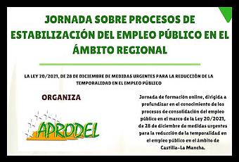 APRODEL organiza esta Jornada de formación online, dirigida aprofundizar en el conocimiento de losprocesos de consolidación del empleopúblicoenelmarcodelaLey20/2021, de28dediciembredemedidasurgentesparalareduccióndelatemporalidadenel empleo público en el ámbito deCastilla-LaMancha.