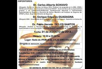 A PARTIR DE HOY, INICIAMOS LAS INSCRIPCIONES A LA JORNADA. Los interesados pueden inscribirse ( por cuestión de cupos limitados en virtud al espacio físico disponible) enviándonos sus datos (apellido, nombre completo, un correo electrónico e indicando si son profesionales- cual- o estudiantes universitarios- carrera y facultad) a nuestro correo electrónico ([email protected]) o a travès del formulario de mensajes que encontraràn en la pagina principal de este blog ( Formulario de mensajes) o bien llamando a los teléfonos publicados en el afiche o dejando mensajes privados por el imbox de facebook o Skype. El evento se abona el mismo día 31/08 un rato antes de su comienzo. SE ENTREGARAN CERTIFICADOS DE ASISTENCIA EL MISMO DIA. La comisión Directiva de IPEM, ha establecido a manera de beneficio para quienes han participado y finalizado, nuestros TALLERES PRÁCTICOS, un descuento del 10 % en la Jornada. CDIPEM