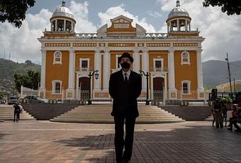 Impoluto, con sombrero negro, a juego con su traje y corbata del mismo color, en contraste con su blanca camisa, el médico José Gregorio Hernández, que será beatificado por decreto papal 101 años después de su muerte, revive en las calles de Caracas para acabar con la COVID-19 en Venezuela.