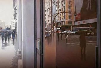 La pintura de José Higuera “Lluvia en Gran Vía” que ilustra el cartel de la muestra, obtuvo el 2º Puesto en La Exposición Realismo en la Pintura 2014.