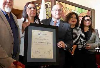 SLP.- En el marco de los festejos por el 431 Aniversario de la Fundación de la Ciudad de San Luis Potosí, se llevó a cabo una Sesión Solemne de Cabildo 2023, donde el Presidente Municipal Enrique Galindo Ceballos otorgó la Presea al Mérito Cultural 2023 al destacado artista potosino, José Isabel Faz Ipiña. Esta distinción fue en reconocimiento a sus más de cuatro décadas dedicadas a la formación de creadores y por su invaluable contribución como artista plástico abstracto y promotor de la modernidad artística.